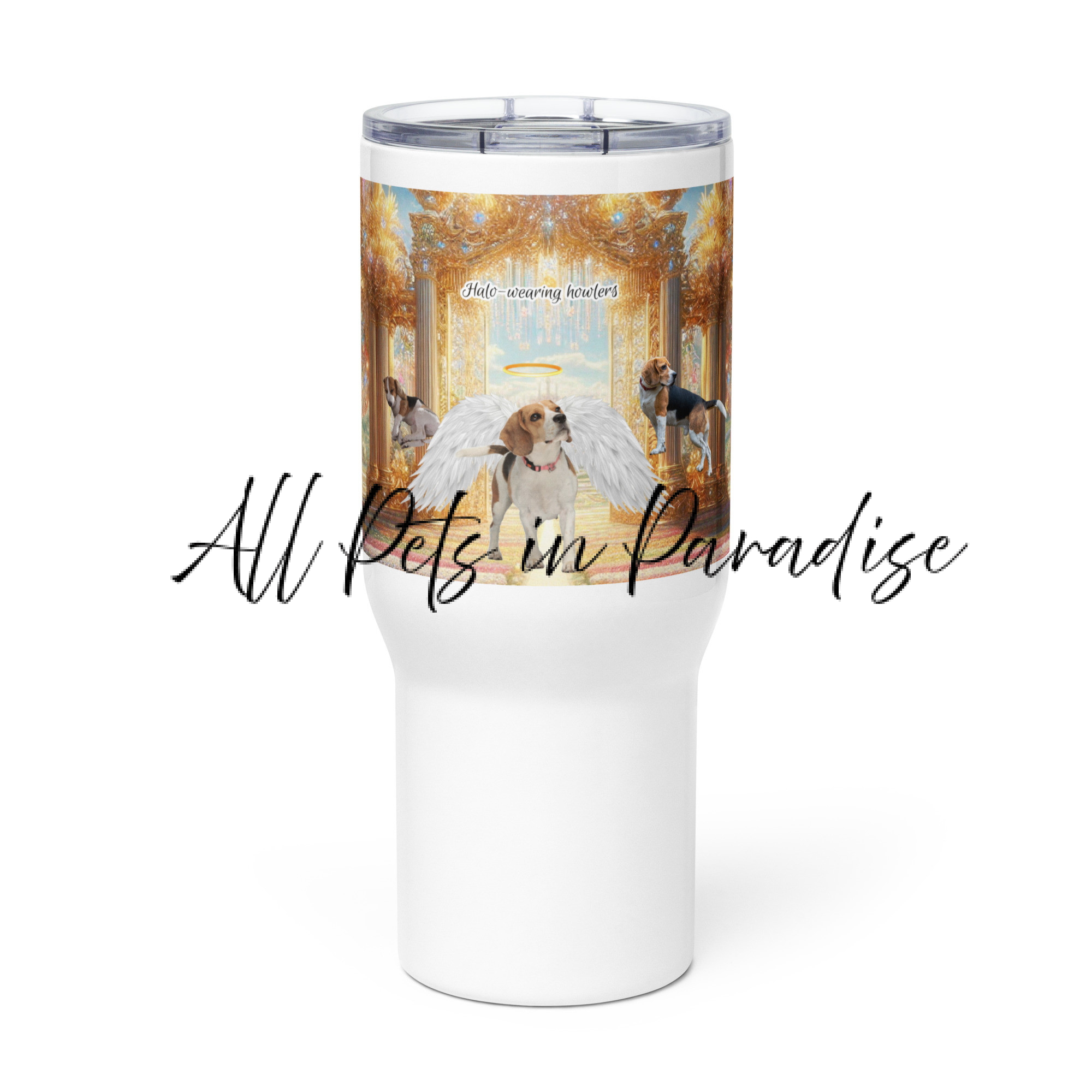 Beagles In Heaven ” Halo- wearing howlers” 25.oz Travel mug with a handle
