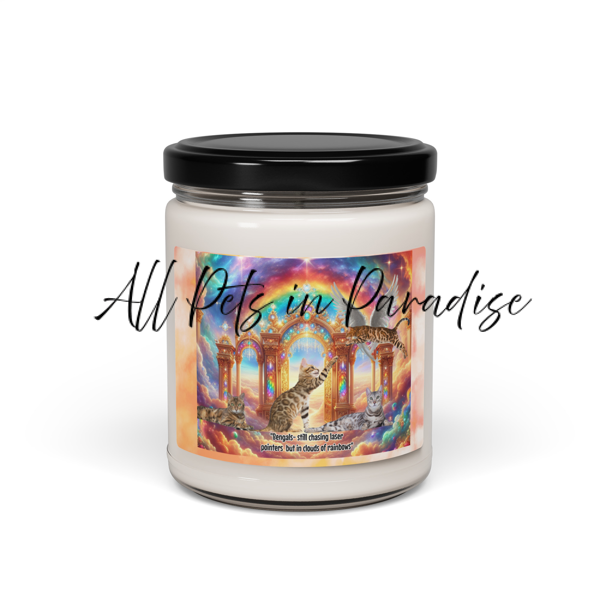 Bengals in Heaven ” Bengals still chasing laser pointers but in clouds of rainbows” Scented soy candle