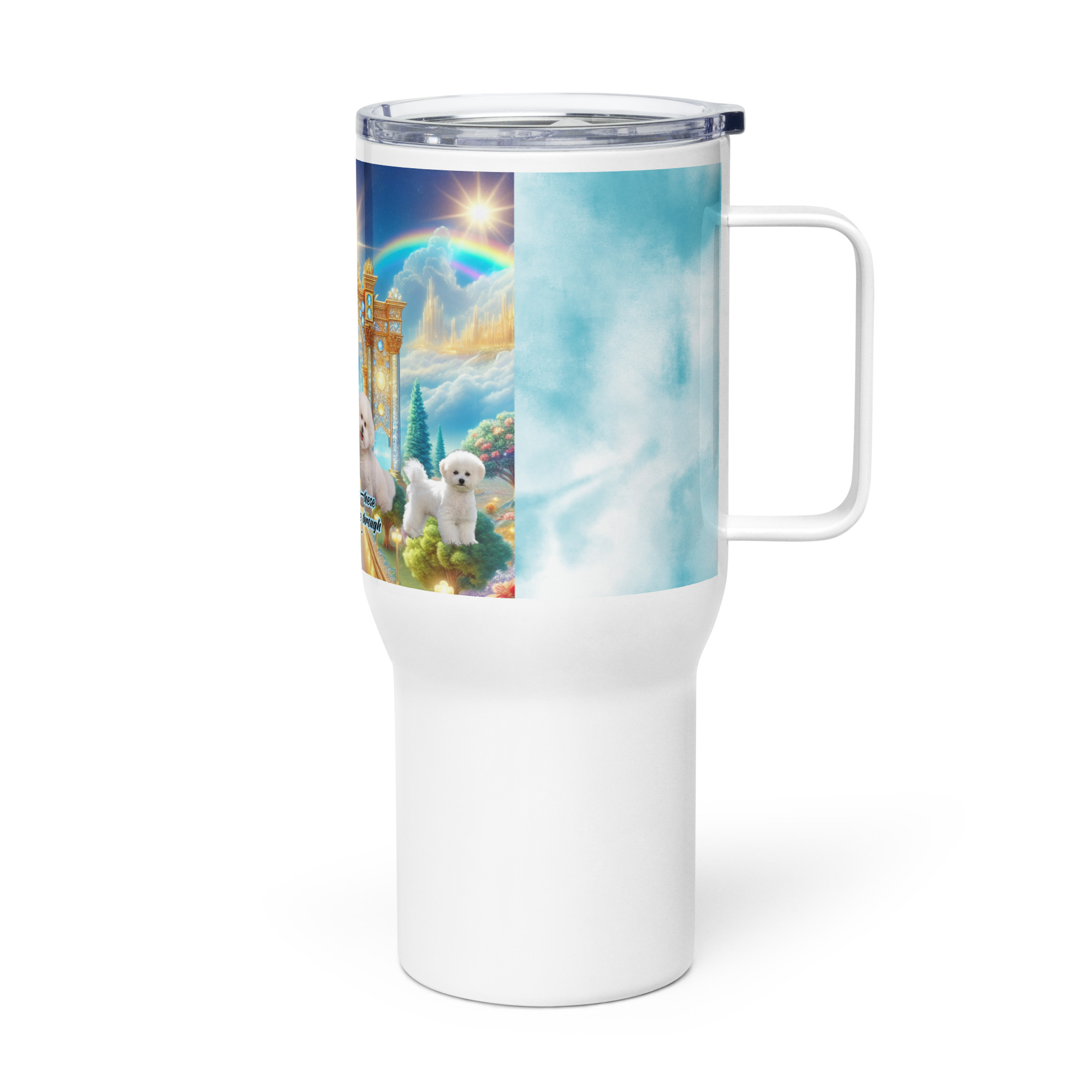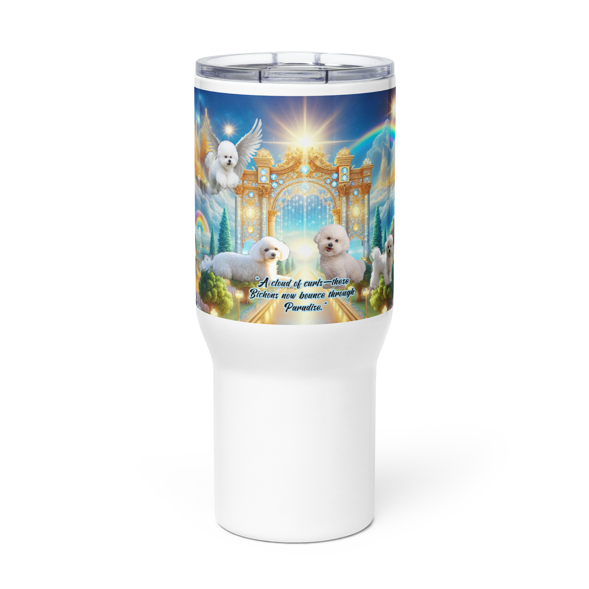 Bichon Frise Dogs ” A cloud of curls- these Bichons now bounce through paradise” .Travel mug with a handle