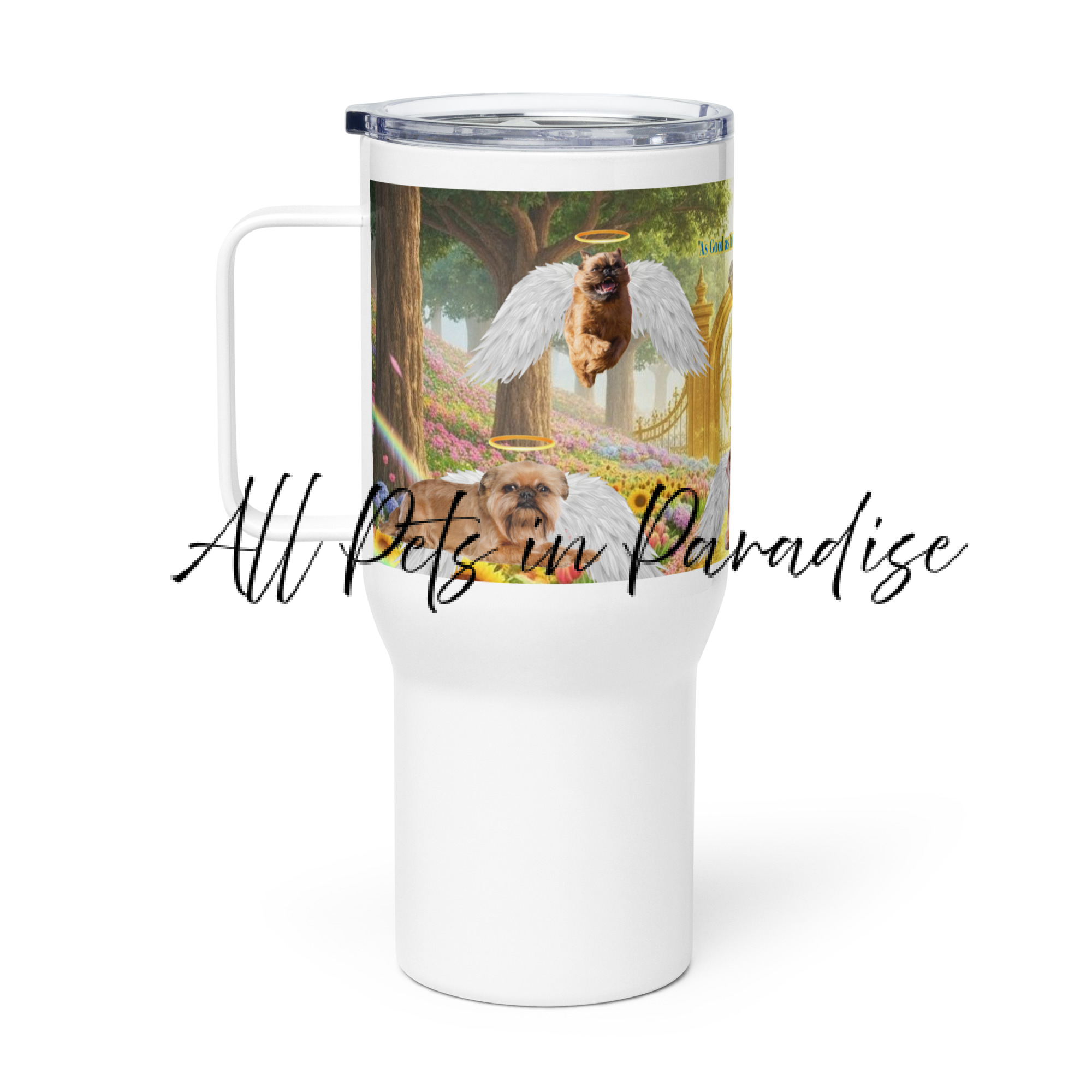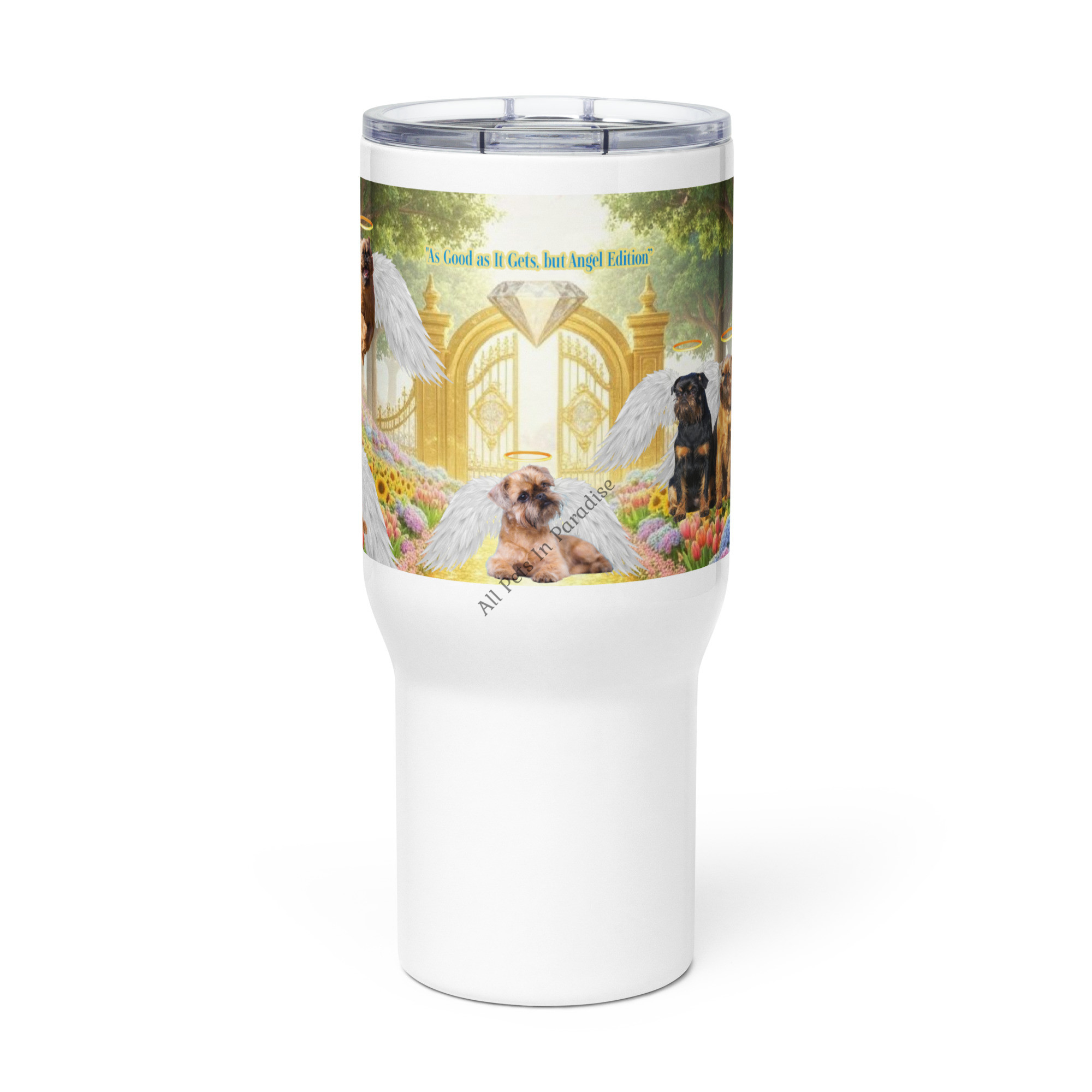 (Brussels Griffon in Heaven) – ” As good as it Gets, but Angel Edition” 25.oz Travel mug with a handle