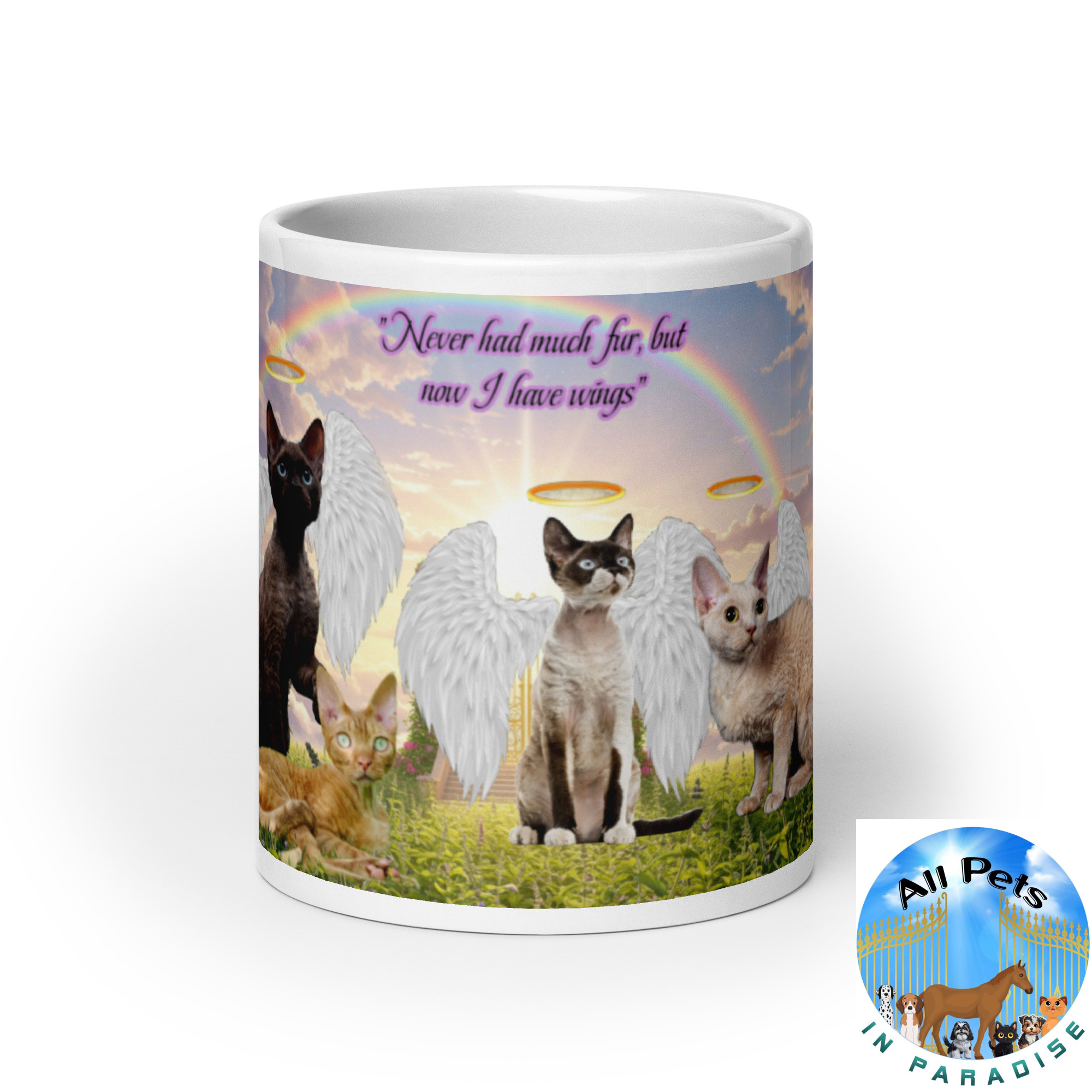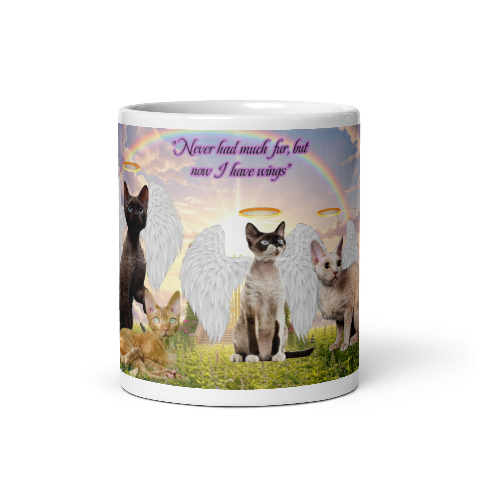 Devon Rex Cats in Heaven” Never had much hair but now I have wings” 15.ozWhite glossy mug