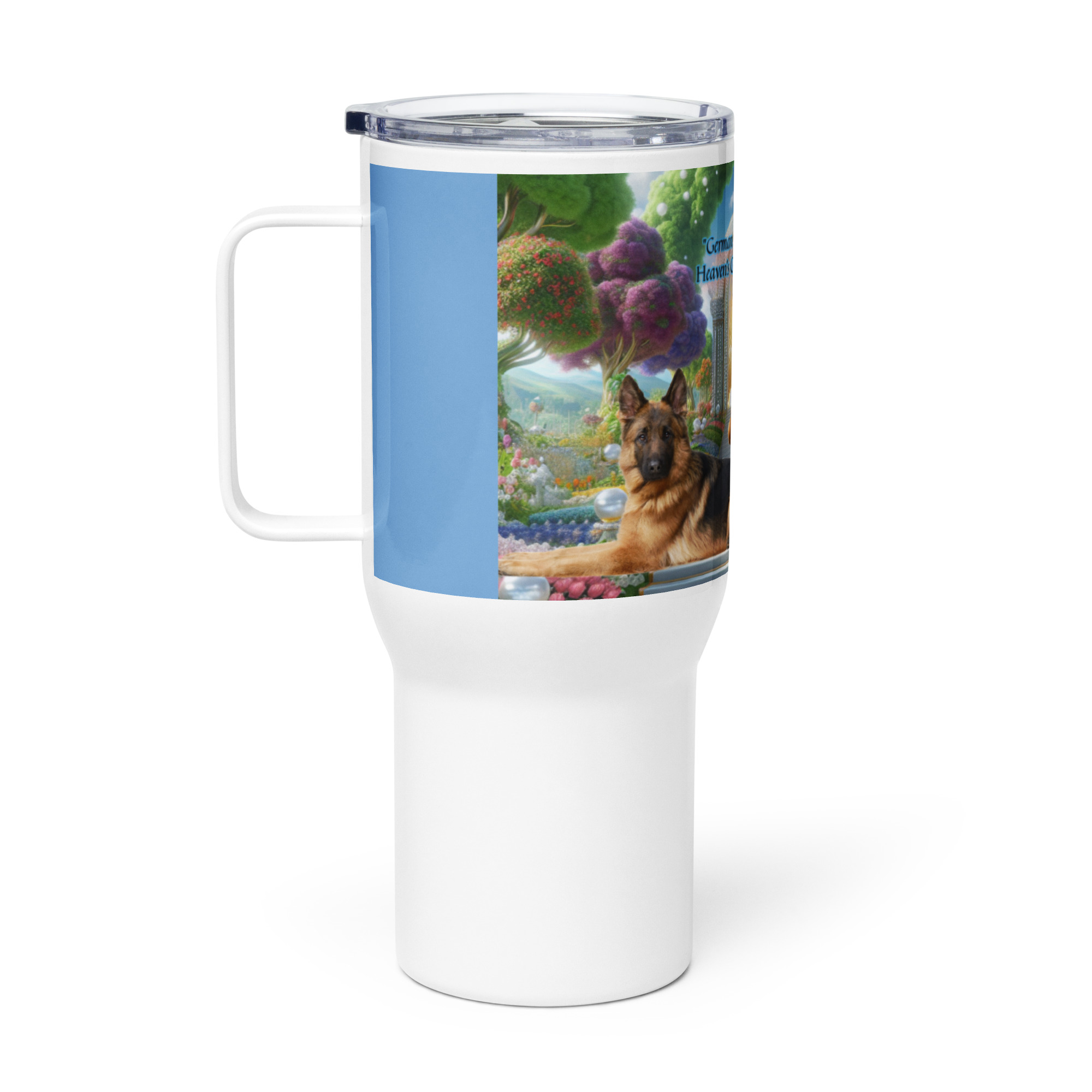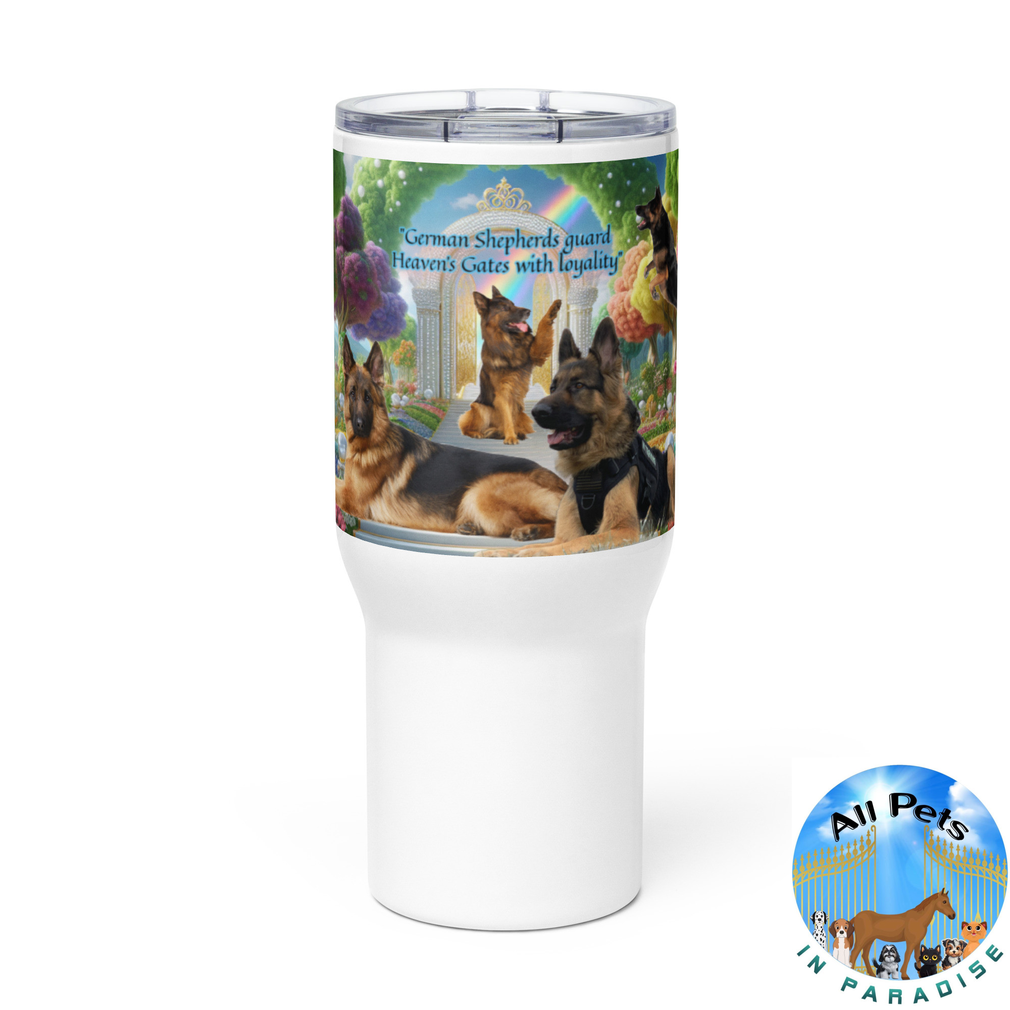 Family Dog German Shepherd ” German Shepherds guard Heaven’s Gate with Loyalty” Travel mug with a handle