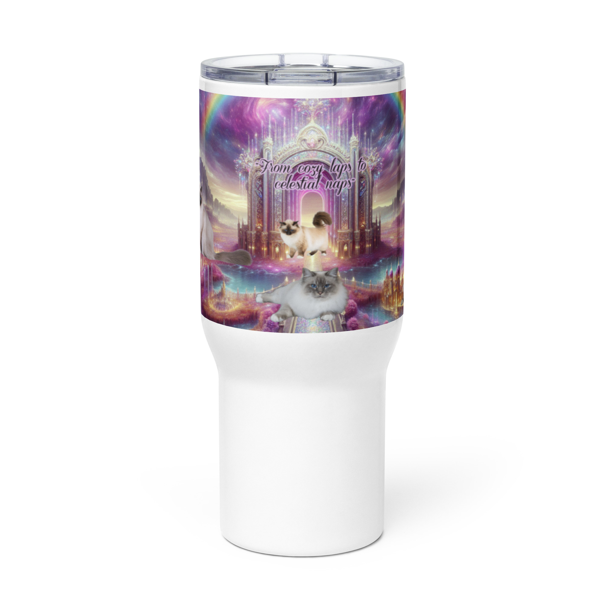 Himalayan Cats in Heaven ” From cozy laps to celestial naps” 25.oz Travel mug with a handle