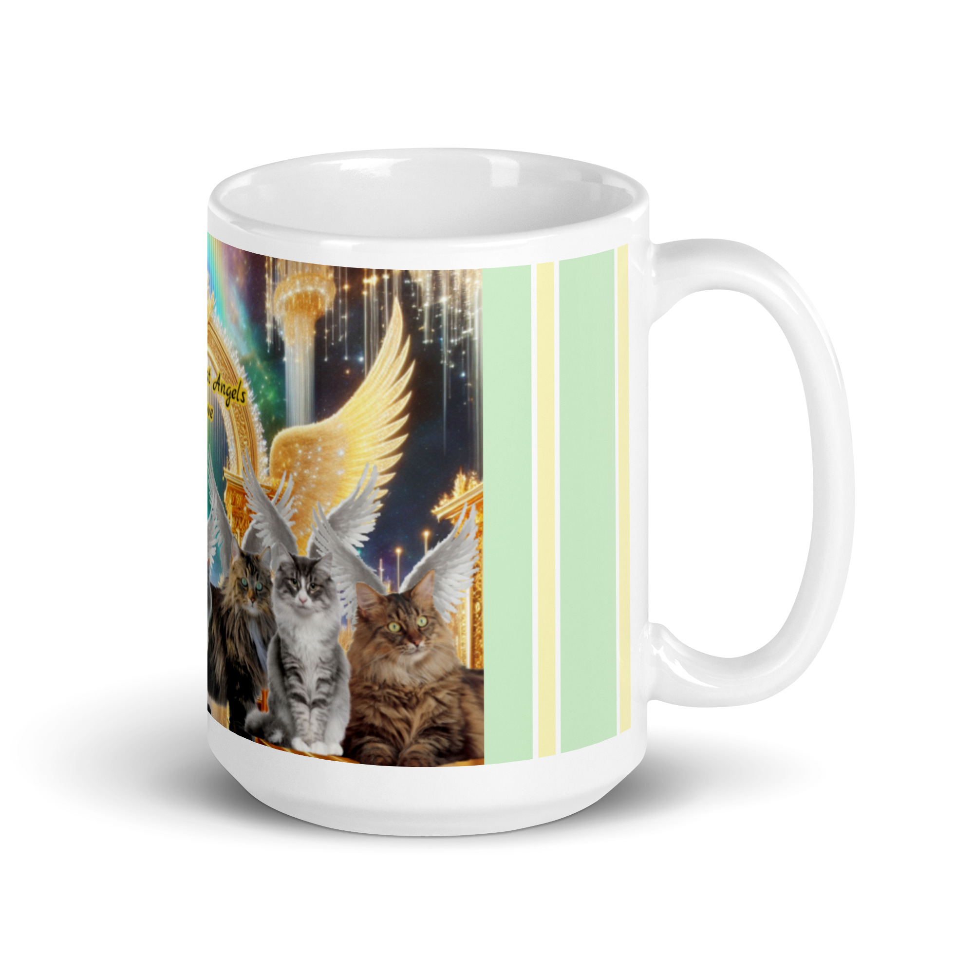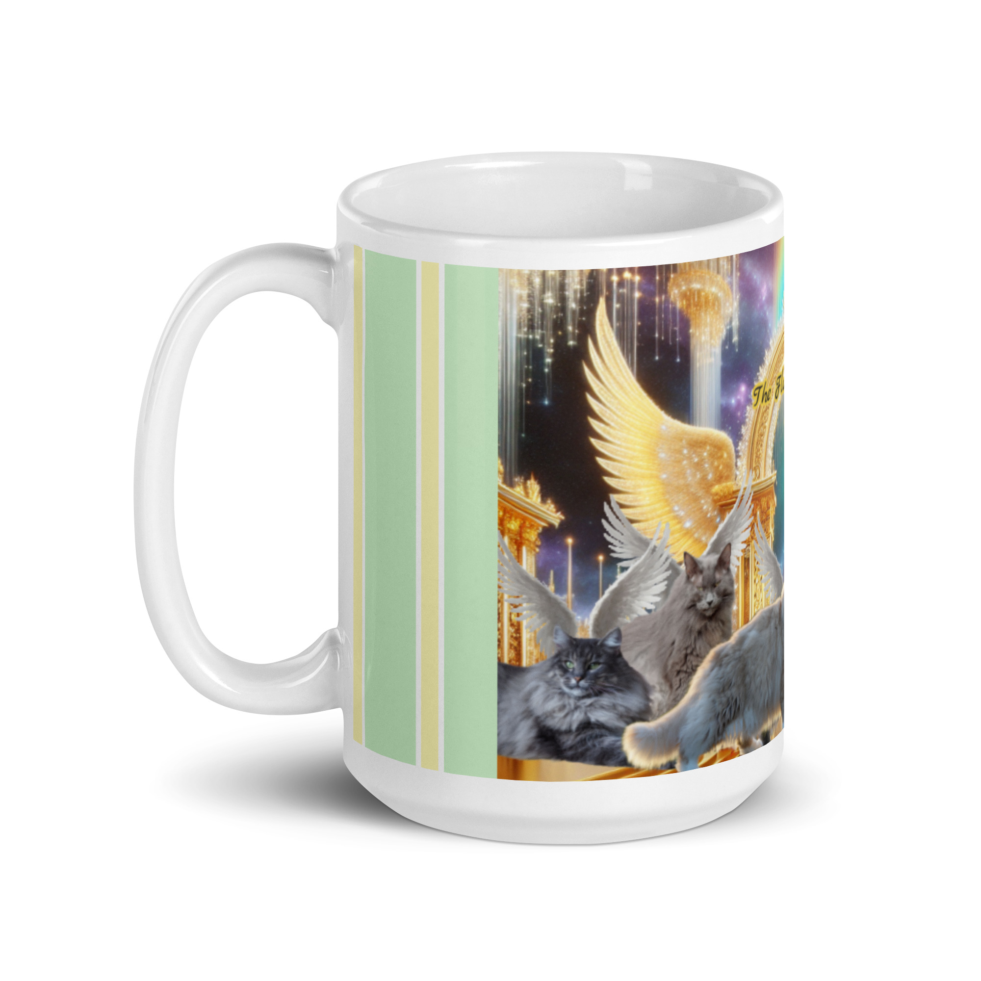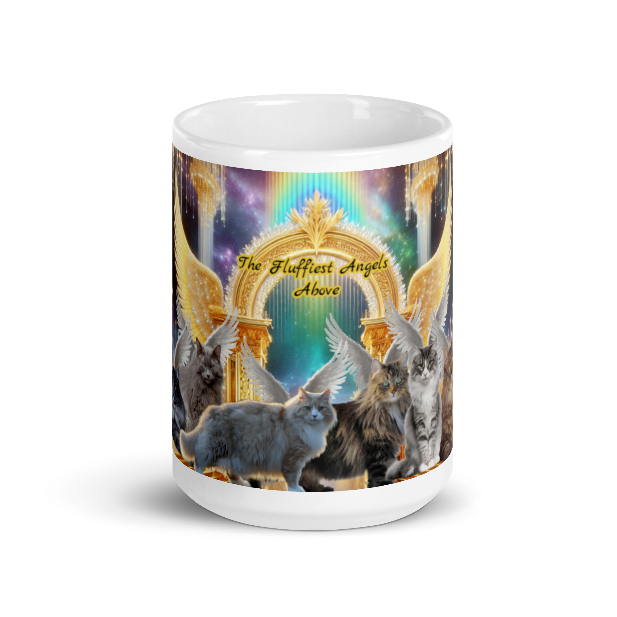 Norwegian Forest Cats in Heaven-” The Fluffiest Angels Above” White glossy mug 15oz