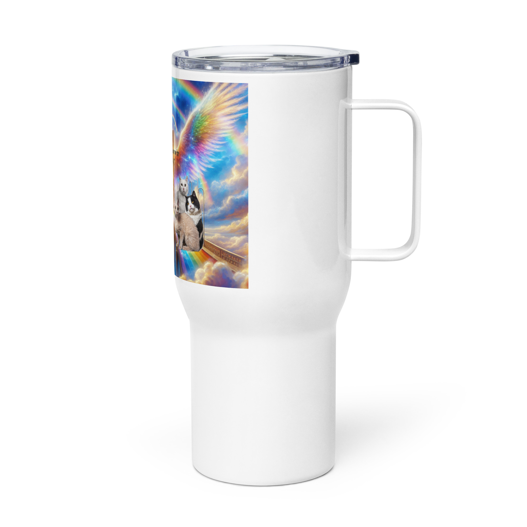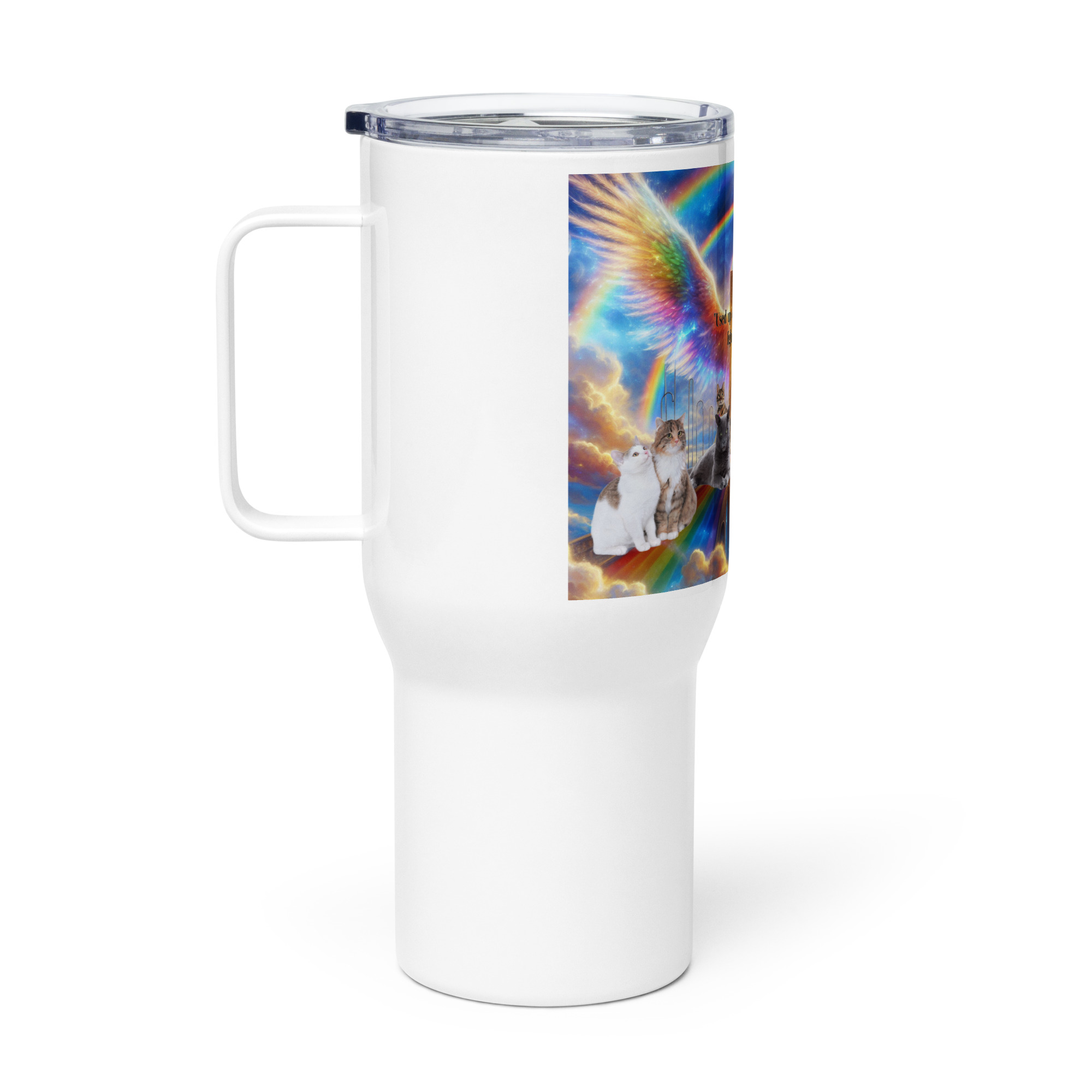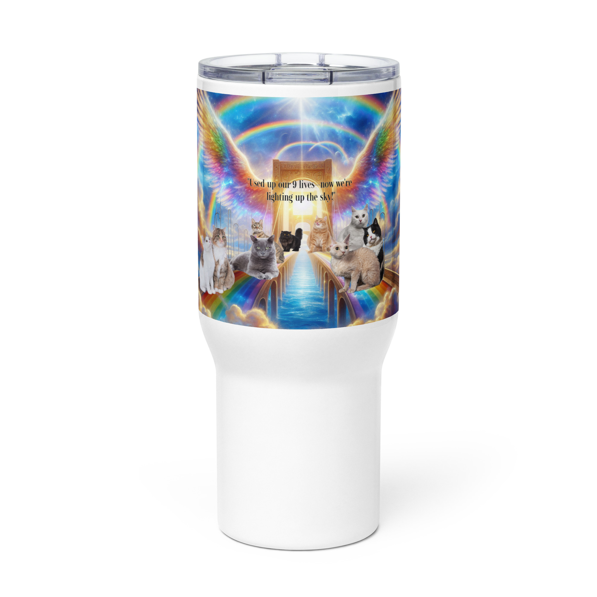 Rainbow Bridge ” Lost our 9 lives now we are lighting up the sky” 25.ozTravel mug with a handle
