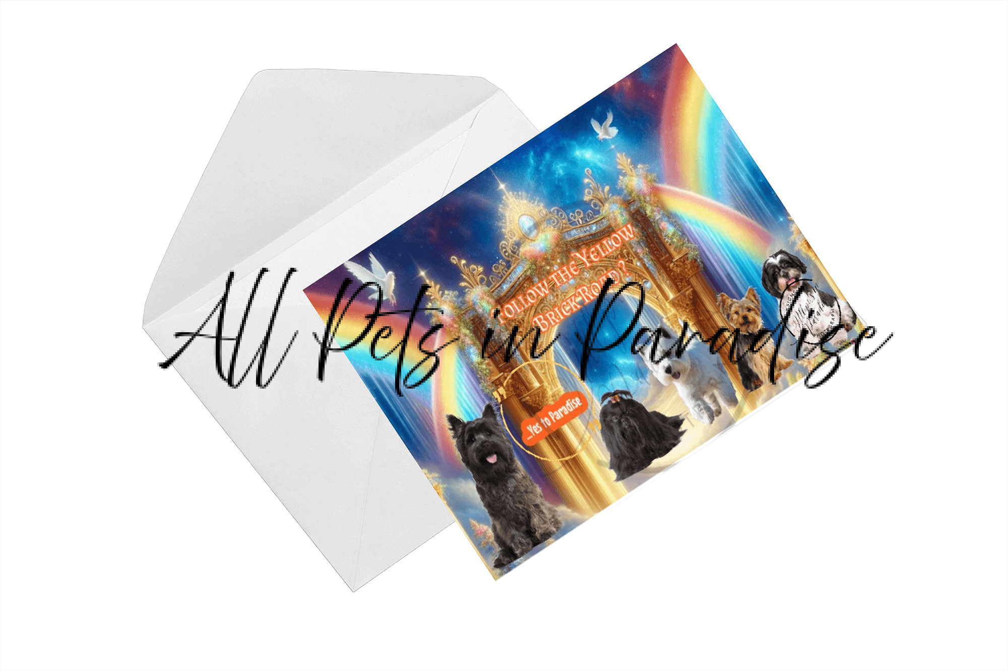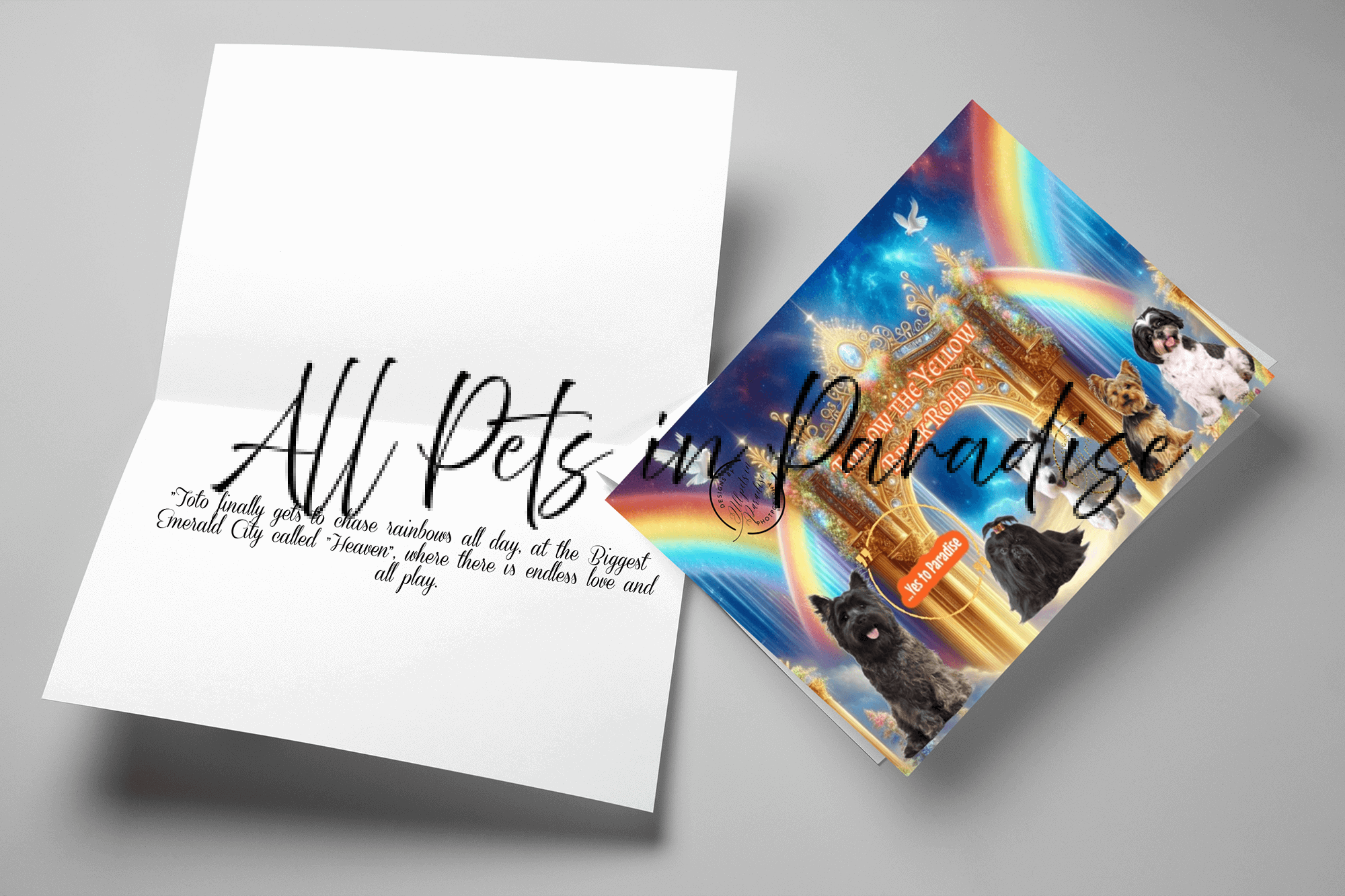 This beautifully illustrated card captures the hope and comfort of knowing your cherished pet waits beyond the rainbow’s end, in a place filled with light, warmth, and endless joy.