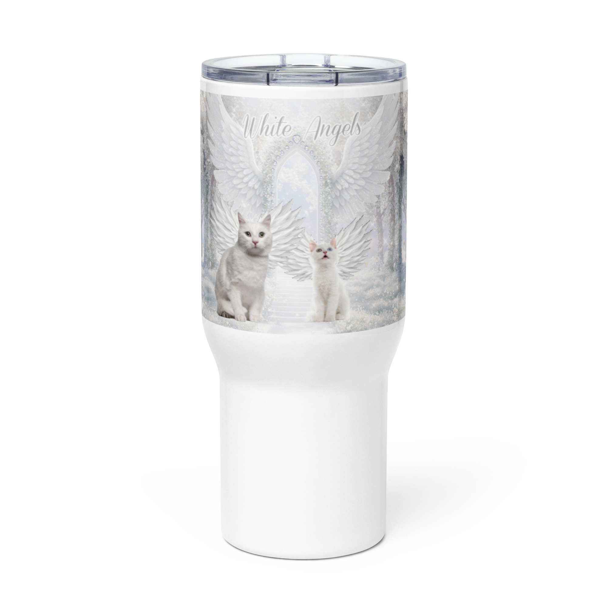 White Cats in Heaven ” White Angels in Heaven” Travel mug with a handle